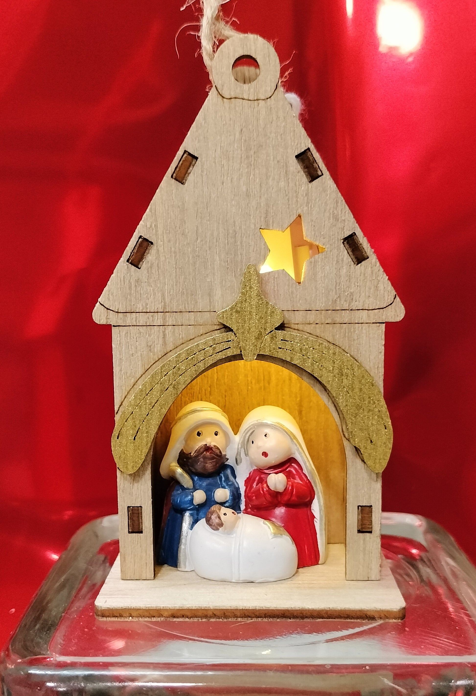 Affascinante presepino in legno tagliato al laser che riproduce una caratteristica chiesetta nordeuropea. Arricchito da una luce LED interna alimentata da batterie a bottoncino, crea un'atmosfera calda e suggestiva. Le proporzioni delicate—10 cm di altezza, 5 cm di larghezza e 4 cm di profondità—lo rendono ideale per scaffali, mensole o come pezzo da collezione. Un'interpretazione sofisticata della tradizione natalizia, dove la precisione artigianale incontra il design contemporaneo.